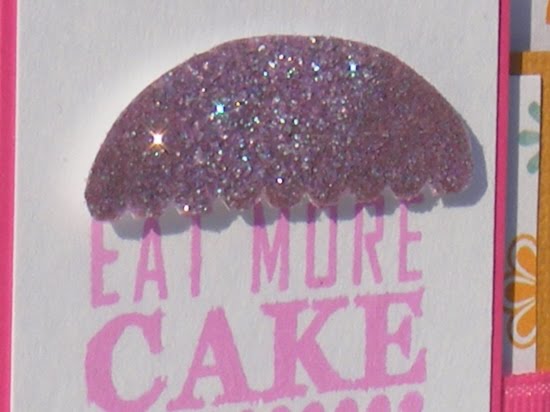 I also used my new Birthday Celebration stamp set from Clear Dollar Stamps. Shawne is on the design team for CDS and she posted a tutorial for glittering up the "icing" part of this stamp set. I just had to try it!